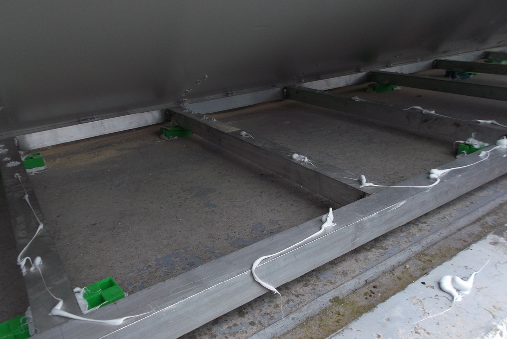 - Sottofondo: nastro EPDM ca. 9 x 3 mm, autoadesivo unilaterale per la separazione della lastra da pavimento in metallo e la sottocostruzione (isolamento acustico).